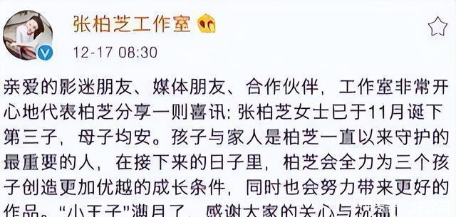 尽管如此,张柏芝依然顶住压力,过好自己的生活。 2018年,张柏芝工作室宣布她已经生下了第三个儿子,这个消息一时激起千层浪, 因为张柏芝至今都没有向大众宣布过第三个孩子的亲生父亲是谁。